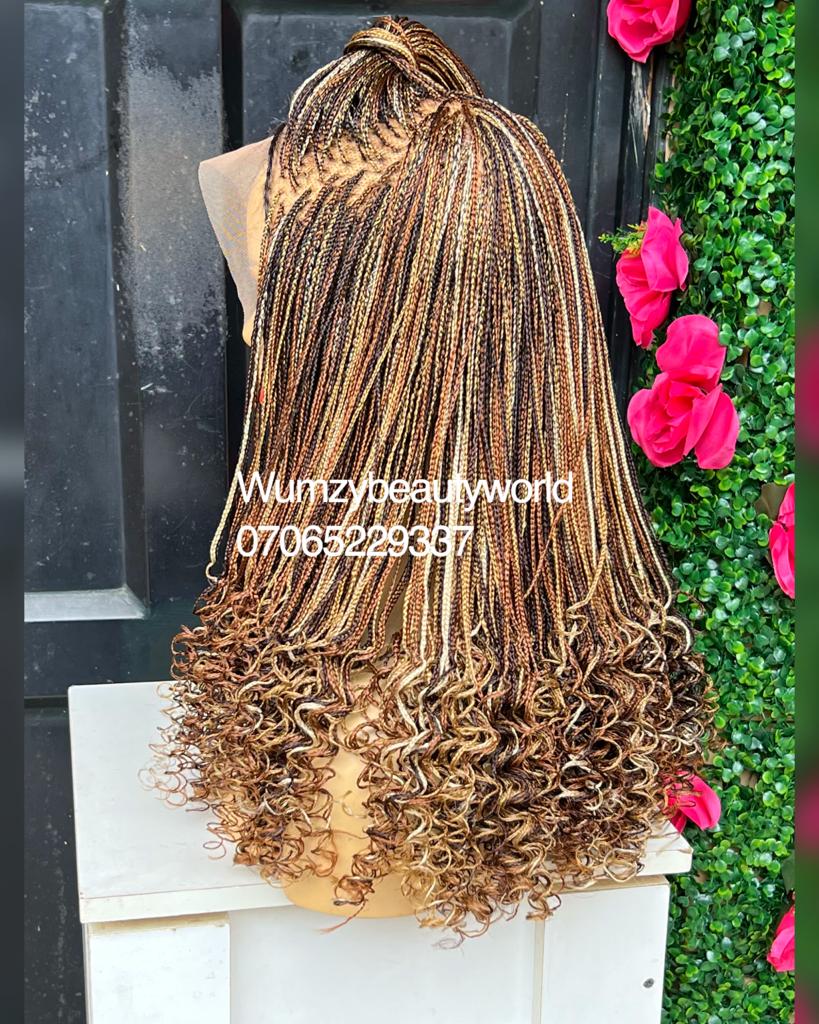 This unit is a custom hand-braided Knotless braids made on full lace, Neatly and tightly done for a long term, it has elastic band to hold to firm.