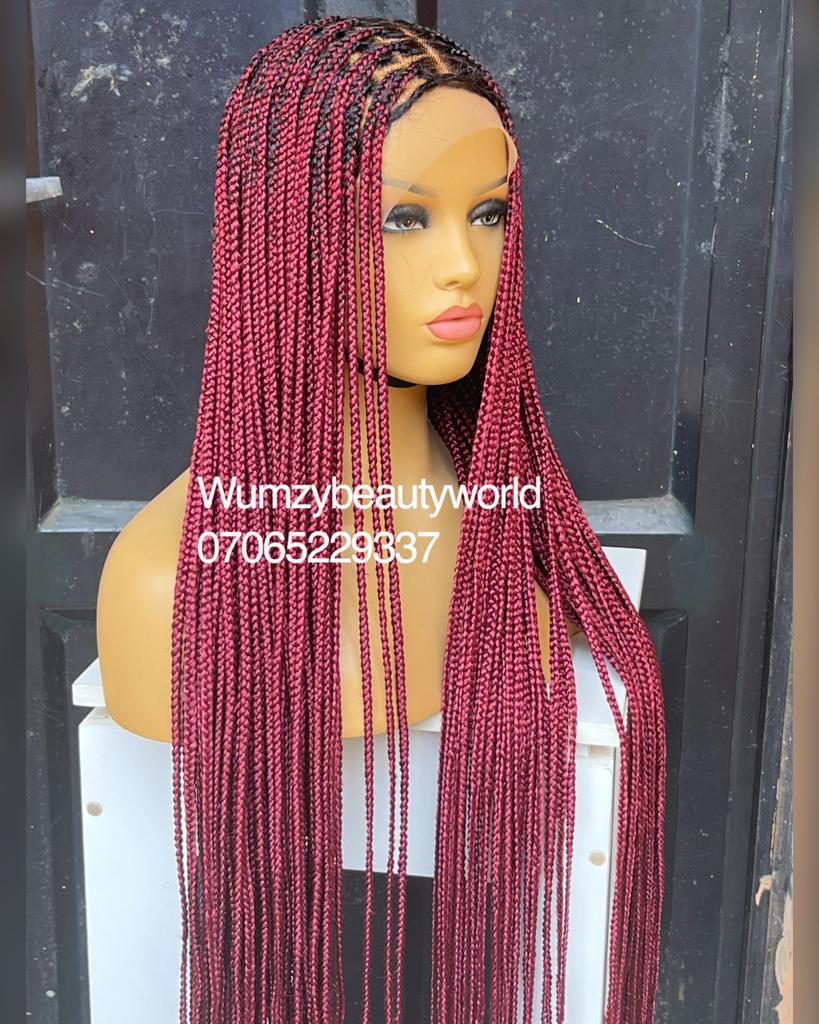 This unit is a custom hand-braided Knotless braids made on full lace, Neatly and tightly done for a long term, it has elastic band to hold to firm.