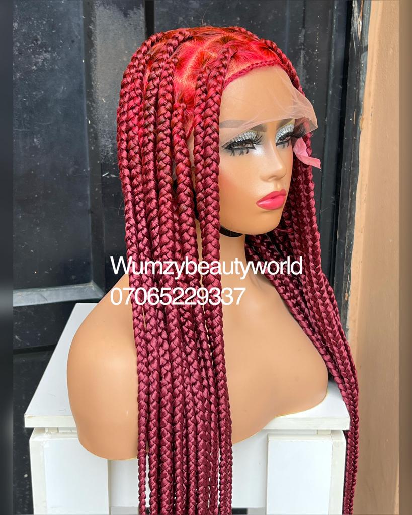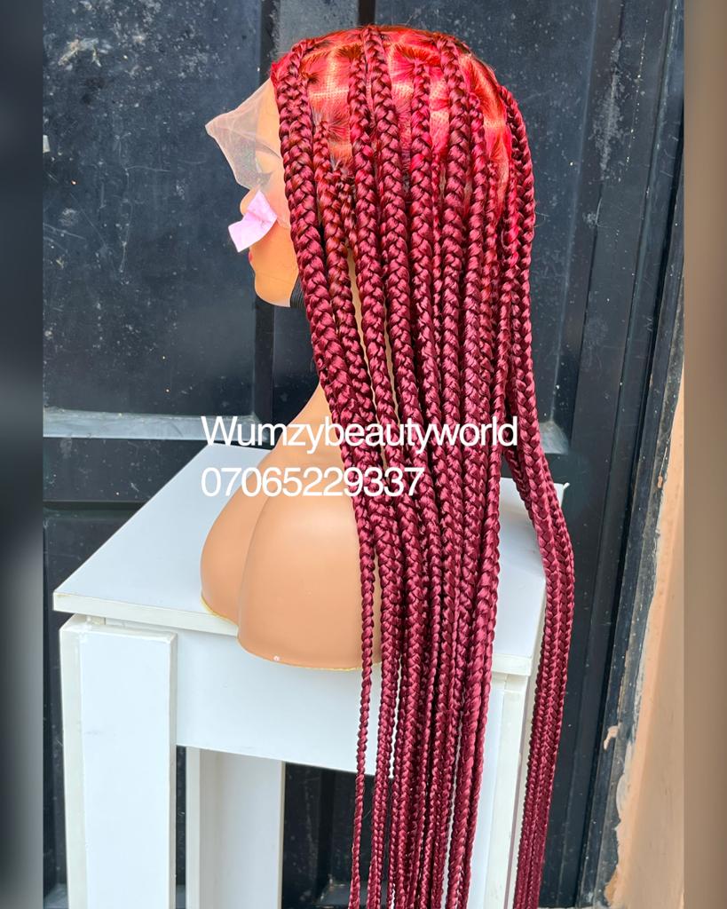 This unit is a custom hand-braided jumbo knotless Braids made on full lace, Neatly and tightly done for a long term, it has elastic band to hold to firm.